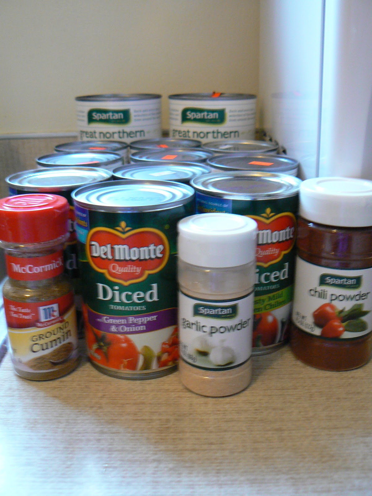 10 cans of diced tomatoes (some w/ chiles, onions, etc.)