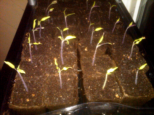And, in case you were wondering, some of my seeds are doing okay in my sun room. The tomatoes are growing strong (I got a variety pack of heirloom tomatoes and multi-colored grape tomatoes), and the marigolds seem to be doing great, too.