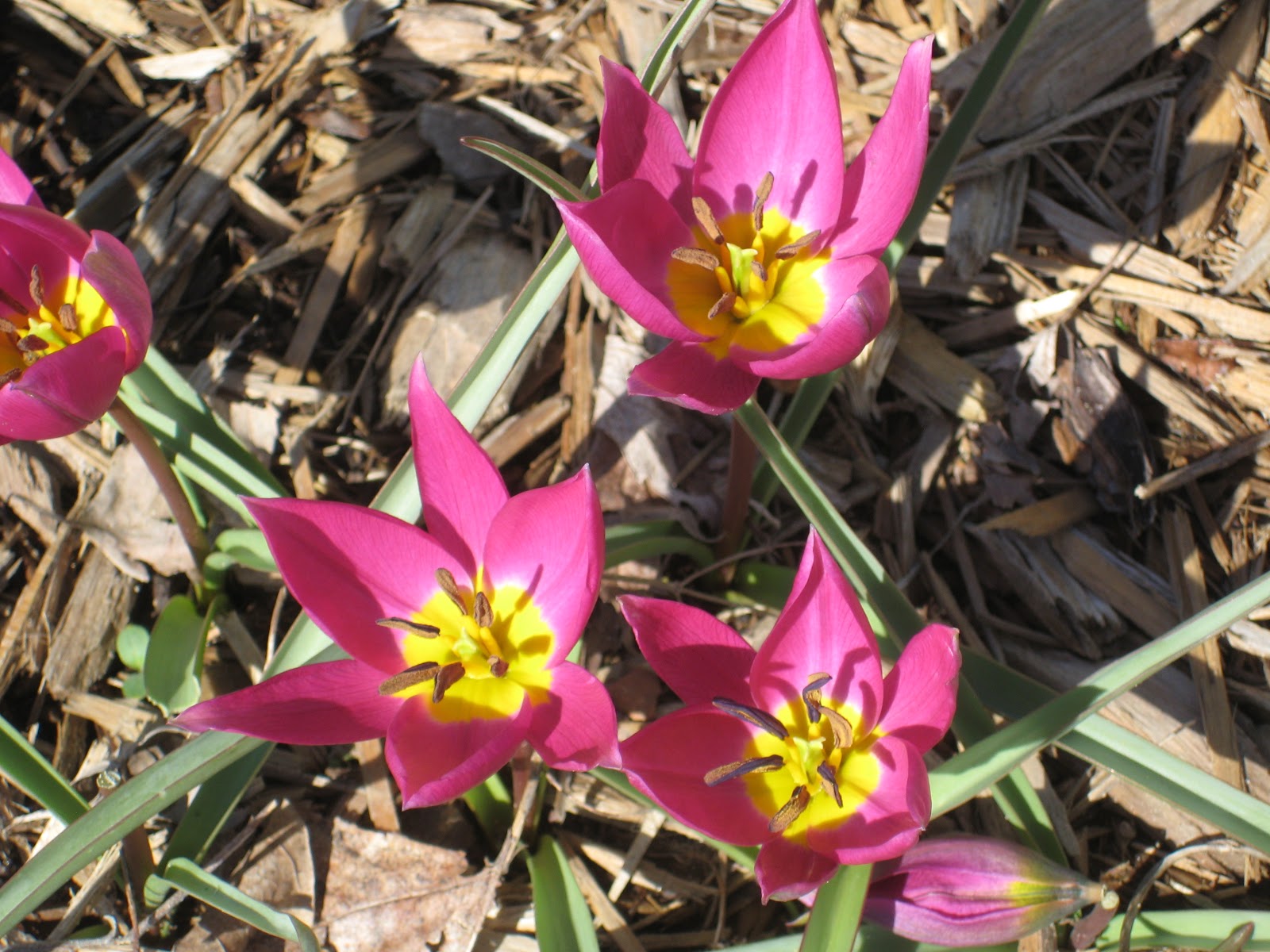 I left work an hour early today and got to enjoy some extra time in my garden – while the flowers were still open. The ground-level tulips and the daffodils are blooming. Check out these beauties!