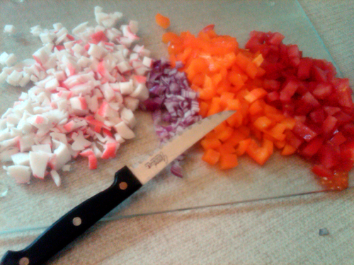 – 4 “sticks” of imitation crab meat, diced