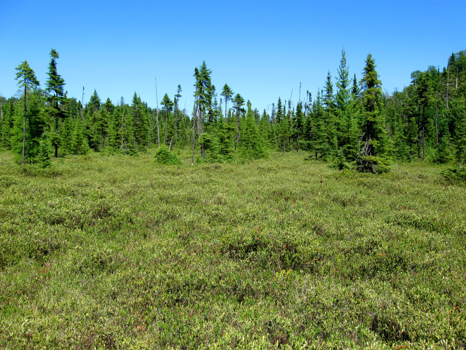 There were a few grassy field-like openings in the woods which were quite serene and some swamps and marshland.