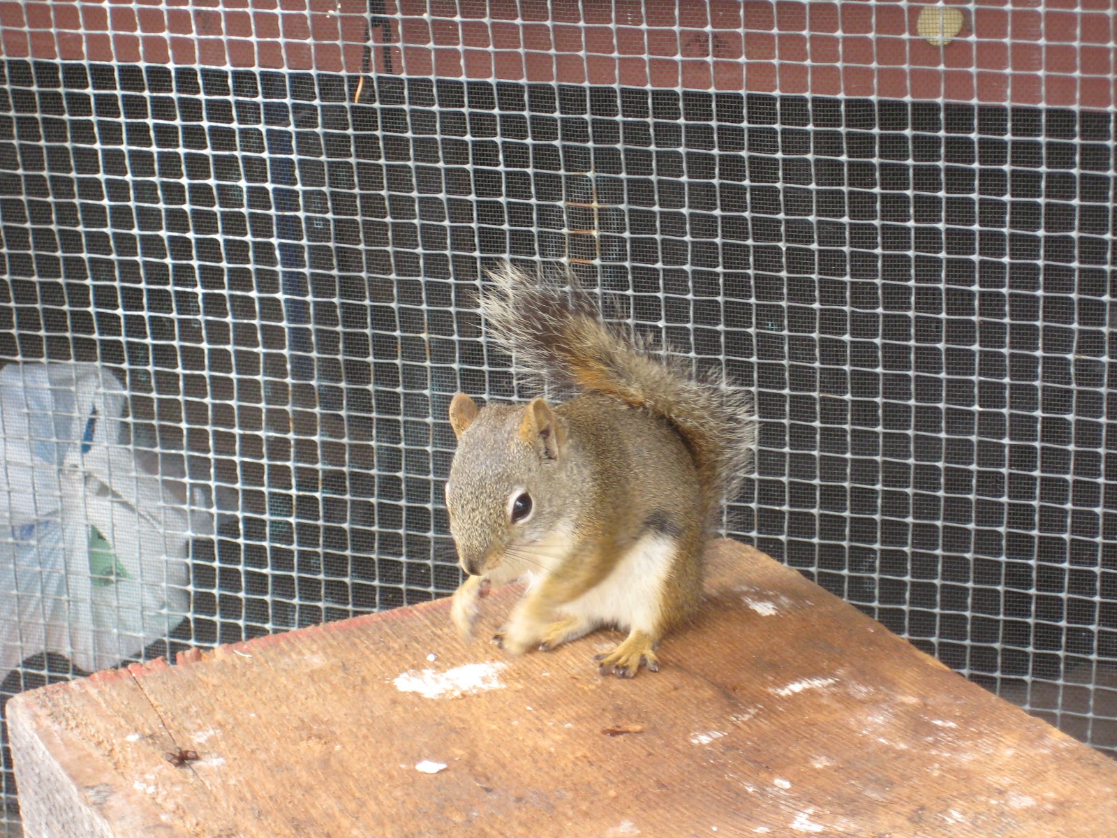 The squirrels were pretty crazy, too.  I never knew squirrels could “talk” so much!  They chirped away, often seeming to talk right to us.  We watched one crazy squirrel try to get into our shelter, but after two failed attempts that ended in it falling from roof to ground, I think it finally gave up.  One squirrel jumped on our picnic table while we were sitting there.  It tried to get the remnants of my oatmeal, but only succeeded in slipping on my spork (yes, I have a green titanium spork) and falling off the picnic table.  This same squirrel also hopped from the table right onto one of our friend’s shoulders!  The squirrels and also the hares did not seem to be at all alarmed by our presence.
