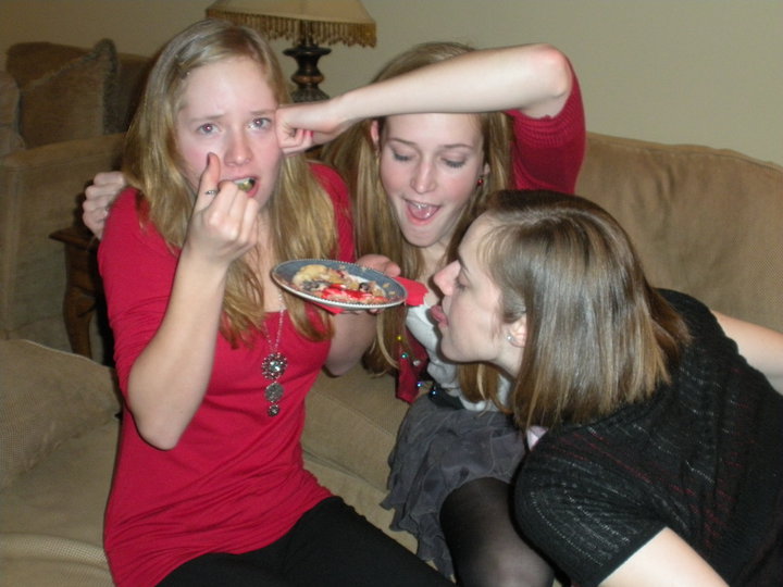 | My cousins & I fighting over some fruit pizza at Christmastime – we’re brutal. |