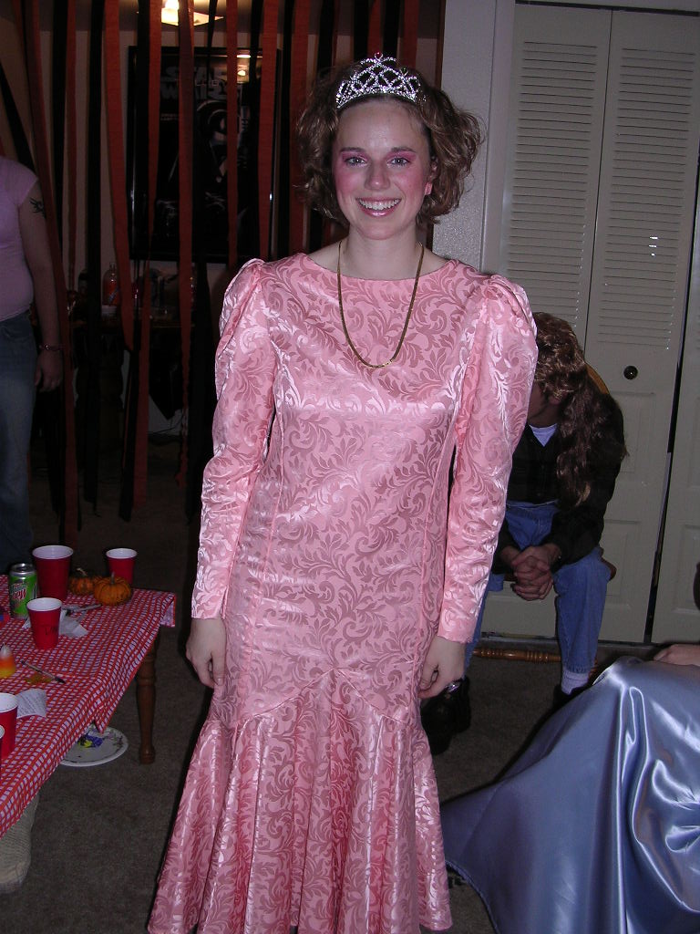 | 2005 – 80s Prom Queen – with a lovely old bridemaid’s dress from Salvation Army! I am pretty sure somebody hand sewed that puppy out of old curtains! |