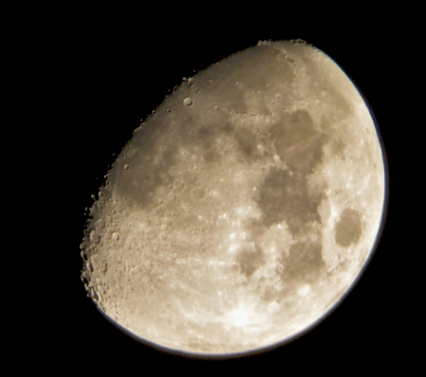 Once I realized that I was getting better at using my camera through my telescope, I decided to turn my eye piece to the moon.  We had a waxing gibbous moon that was brilliant and splendid!  I learned a couple more tricks with my camera to capture some decent pictures.