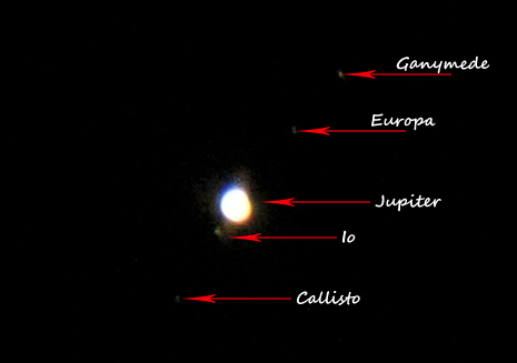 Jupiter and Galilean moons Callisto Io Ganymede Europa through telescope