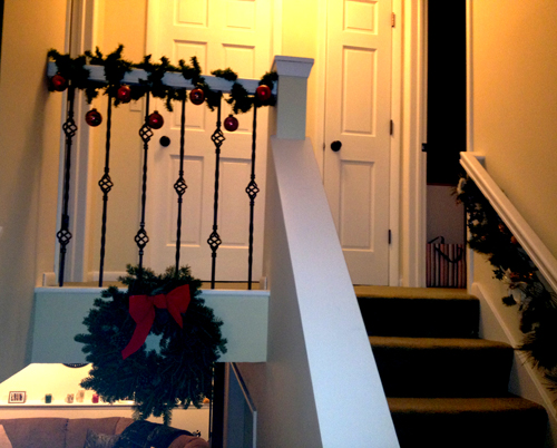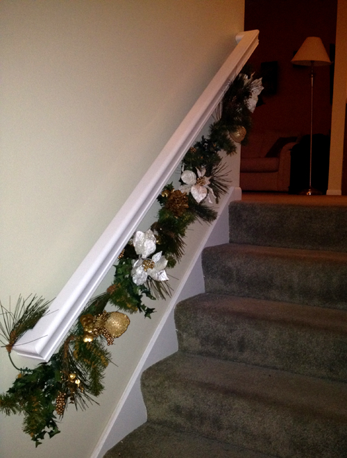 The only problem is that I only have 2 strands. They are perfect for both of my stairways, but we also have the little balcony that overlooks the main level. So, here’s what I decided to do there: