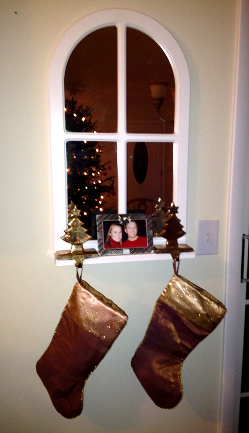 And, since we don’t have a fireplace, our stockings are hung wherever I can find a spot: