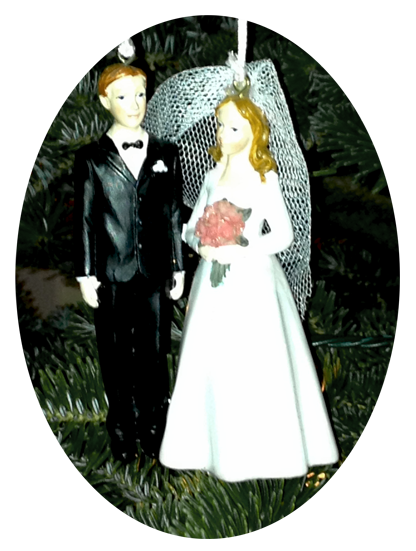Tom also found our most special ornament: the topper from our wedding cake!