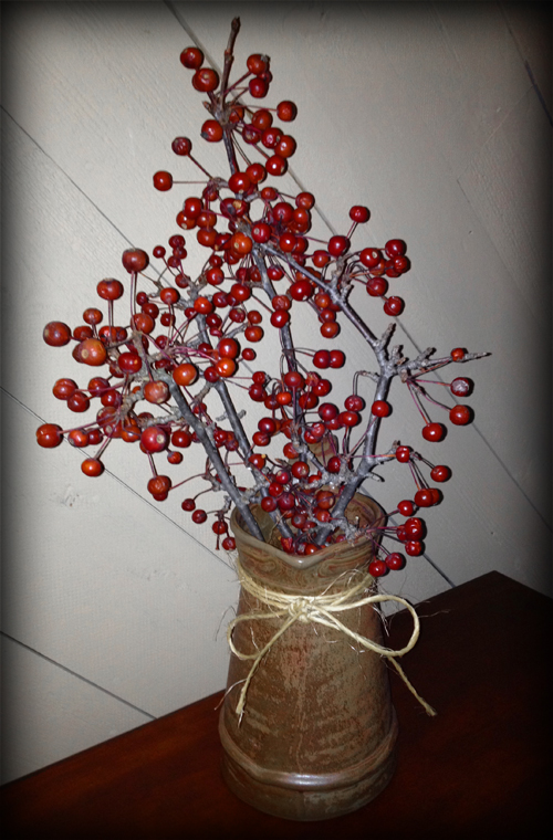 But I actually prefer the centerpiece that’s out in our sun room right now — real winter berries from a tree in our side yard!