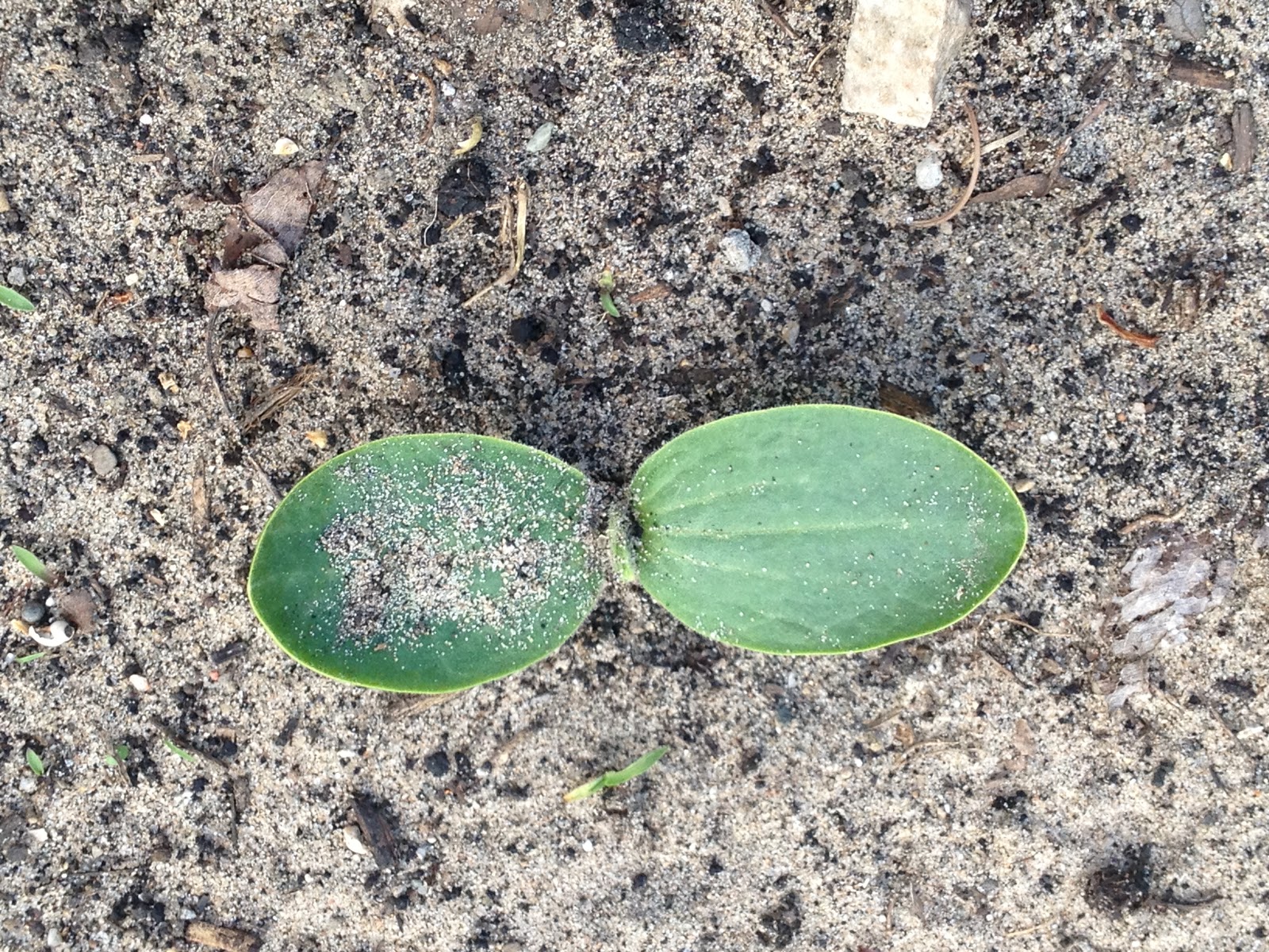 I also discovered that I have a lot of what I think are pumpkin volunteers. After Halloween last year, I threw our old pumpkins and squash into my garden to let them decompose and to see if any of the seeds would sprout this year. Well, they’re all over the place! I transplanted a few of them to one corner of the garden; others I may just let grow where they are and see what happens. Maybe I’ll get some pumpkins or other squash this year!