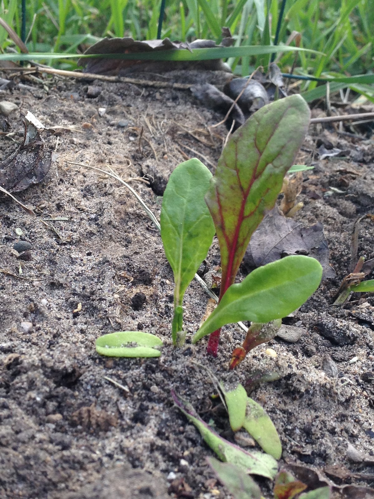 There’s lots going on in my vegetable garden already, though not much will be ready to harvest anytime soon. I do have some greens growing: spinach, lettuce and Swiss chard! There are a few spinach leaves that are ready, and the rest shouldn’t be too much longer.
