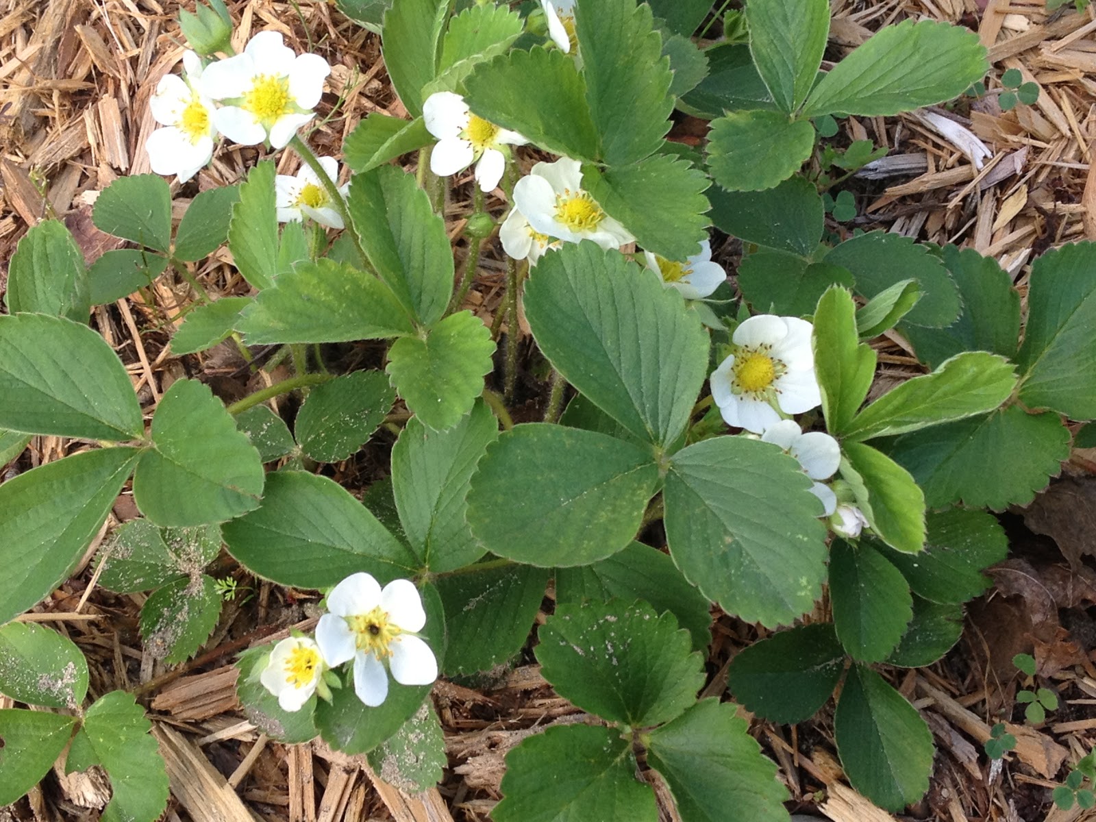I think the only other thing in bloom right now are my strawberries. I transplanted them earlier this spring, and the transplant seems to have been a success! There are lots of flowers, so I’m hoping for a good berry crop this year!