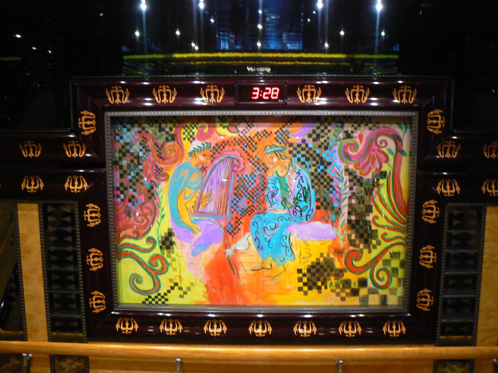 We were on the Carnival Legend cruise ship for our trip, which holds about 2,100 passengers, plus crew members. It didn’t take long to realize that our ship had a theme. The decor was pretty ornate, and all around the ship was decorated with artwork depicting various legends, stories and myths.
