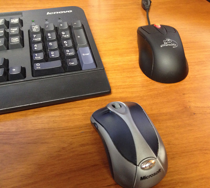 1. A heated mouse.  Yes, they make heated mice.  I found two different companies that make them, but ended up getting the WarmMe mouse for my desk at work.  It uses infrared heat and actually does help keep my hand warm — which is great, because for whatever reason my mousing hand is always FREEZING at work.  My co-worker told me that it must be wind burn 😉  While the WarmMe mouse works great as a hand warmer, it rather sucks as a mouse.  So, for now, I have two mice on my desk — one for most of my actual mousing tasks and one to rest my hand on when it’s cold!