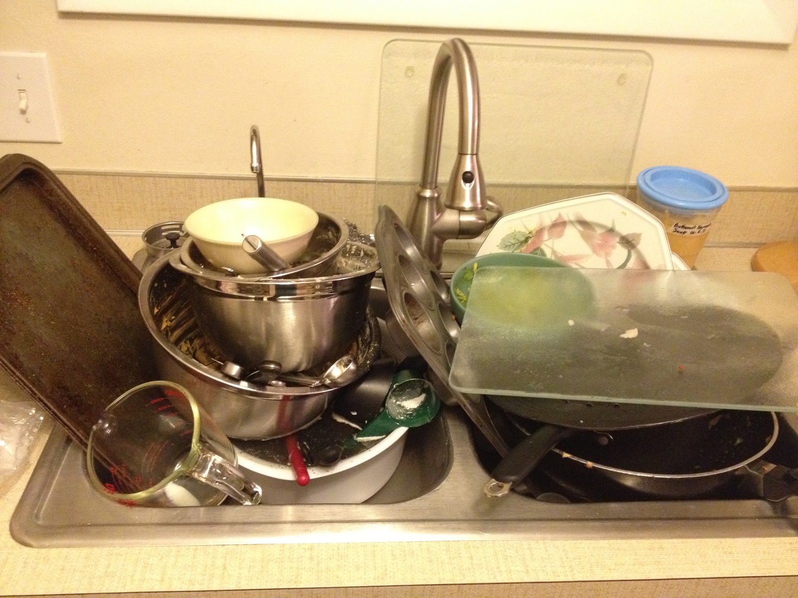 | This is what my sink looked like Thursday night when I was almost done with my cooking! |