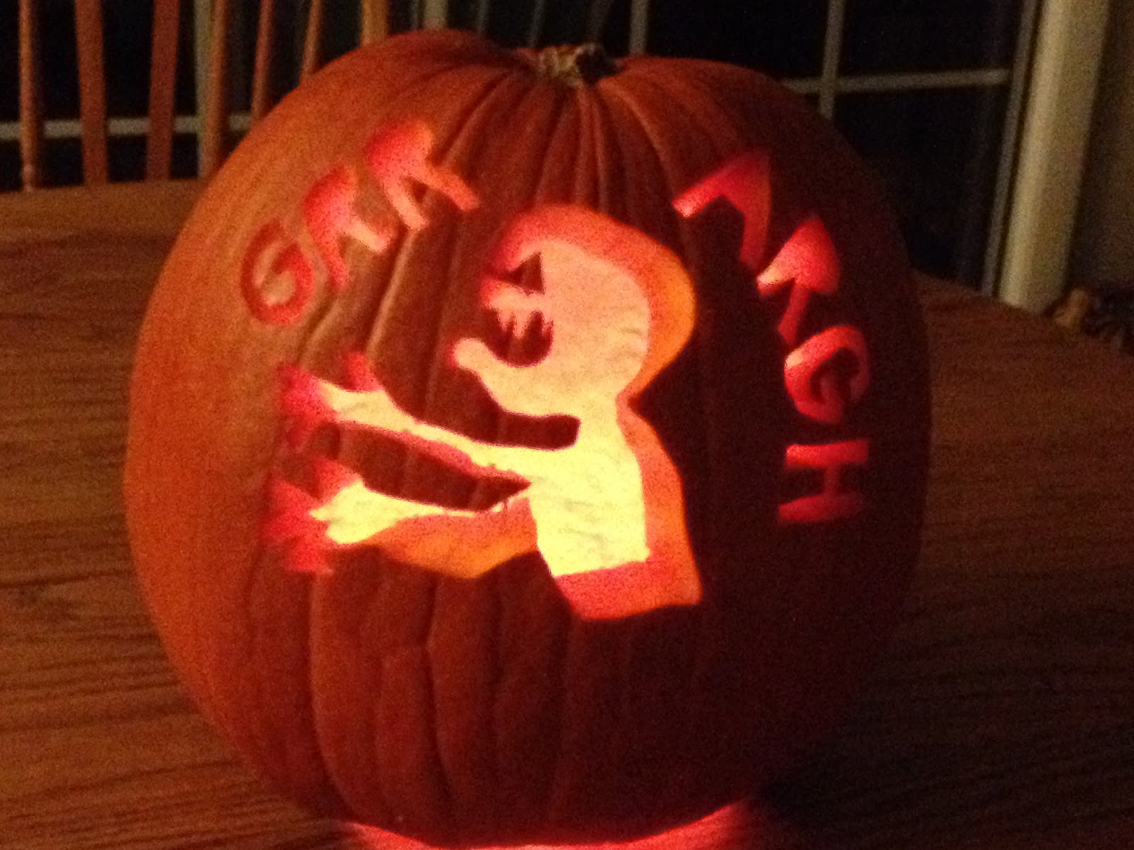 And now, for the pumpkins.  The first one I modeled after “Mutant Enemy” productions, since we’ve been watching a lot of Joss Whedon stuff this fall – including going through the Firefly series with some friends and now getting addicted to Dollhouse.