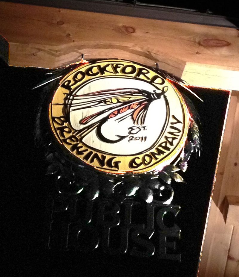 Yesterday was going to be a lazy Friday night at home, until we got a message from some friends interested in joining us on our brew tour. We decided to check out Rockford Brewing Co. since it is very close to home for us, it’s brand new, and Tom’s been dying to check it out.  Unfortunately, I’m not sure that it’s a place we’re going to want to frequent.  The atmosphere was fine — there’s a downstairs and and upstairs with plenty of seating, though the upstairs was pretty full.  They had six beers available, so the guys both got the sampler to try them all.