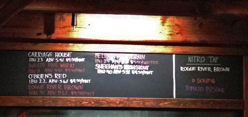 1. Rogue River Brown – This is the beer they had on the nitro tap, which we learned creates smaller bubbles in the beer, and helps to give a creamier mouthfeel to stouts and porters.  It was the favorite of both John and Tom — and possibly mine, too.  For me, it was kind of a toss-up of their top two.