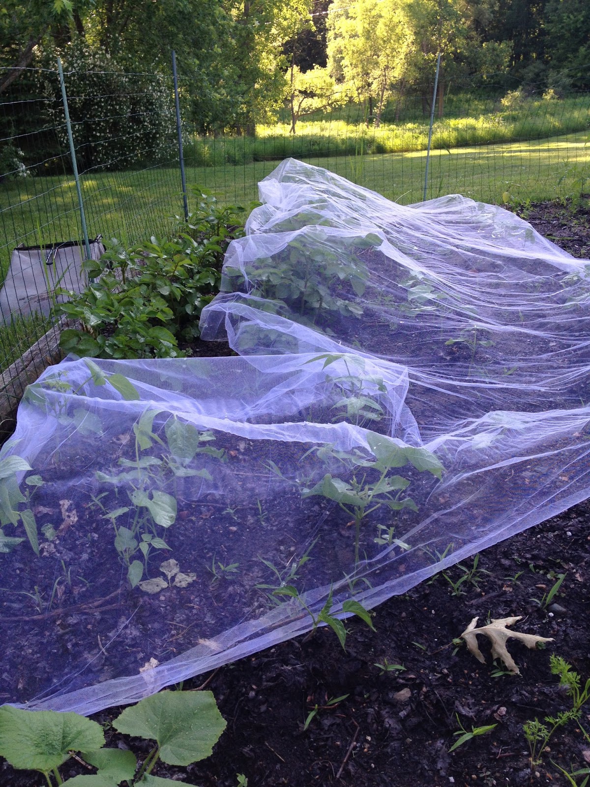 So, here’s my plan of attack: I fashioned some “netting” out of tulle fabric that I can drape over my plants at night to hopefully protect them from the deer. I also bought some deer scram — an organic, granular spread that is supposed to repel deer. The liquid fence didn’t work last year, so I wanted to try something new. Also on the list to try: dried coyote urine. Gross, I know. But I want my tomatoes and beans this year, and I will try desperately to defend my vegetable plants against those who would destroy them! I also want to get one of those “game spy” cameras that hunters use so I can capture pictures or video evidence of my thieves — just to be sure who is there and what they are going after!