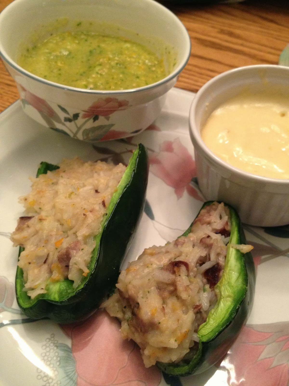 | Green salsa, stuffed peppers & cheese sauce = DINNER! |