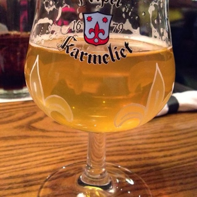 With dinner, Tom ordered the Tripel Karmeleit by Brouwerij Bosteels. I also learned something interesting with this order. It came in a special glass that had the name of the beer logo’d on it. Ashley’s had to get special permission to allow use of these glasses, because Michigan law actually prohibits the use of alcohol logos on a glass (or on store windows, etc.). Conversely, there was a time in Belgium where it was actually required to use a glass that bears the logo of the beer.