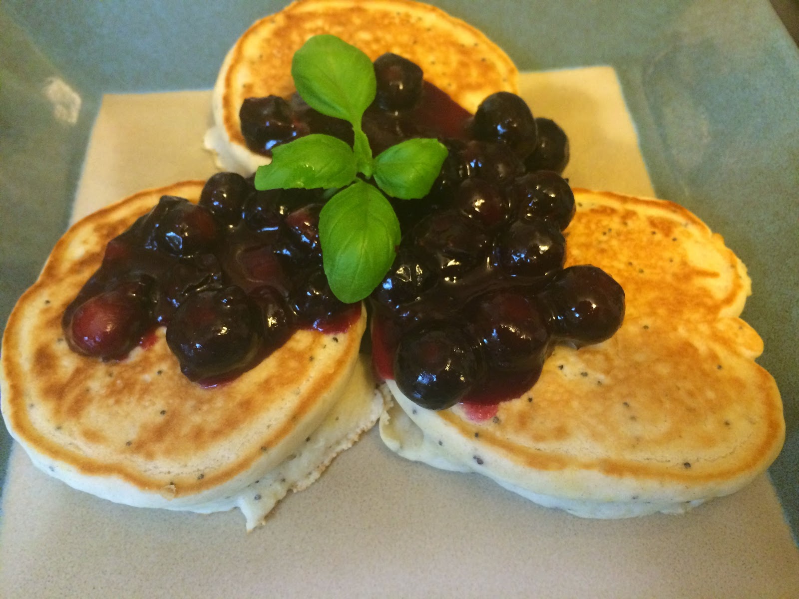I had my mom and step-dad over on Sunday for Mother’s Day. We went out to lunch, but I decided to make a dessert we could eat at home. I had bought a whole giant container of fresh blueberries at Costco and had some lemons on hand…I thought this flavor combination would be great in a dessert, but wasn’t sure what I wanted to make. Actually, I started with breakfast. I had been wanting to try lemon poppy seed pancakes for a while, and I found this awesome looking recipe for Blueberry Lemon Sauce, which I thought would make an awesome topping. I was not wrong. I kind of cheated on the pancakes, though. I just added some poppy seeds, lemon zest and lemon juice to a double batch of Krusteaz pancake mix! It turned out pretty tasty, though.