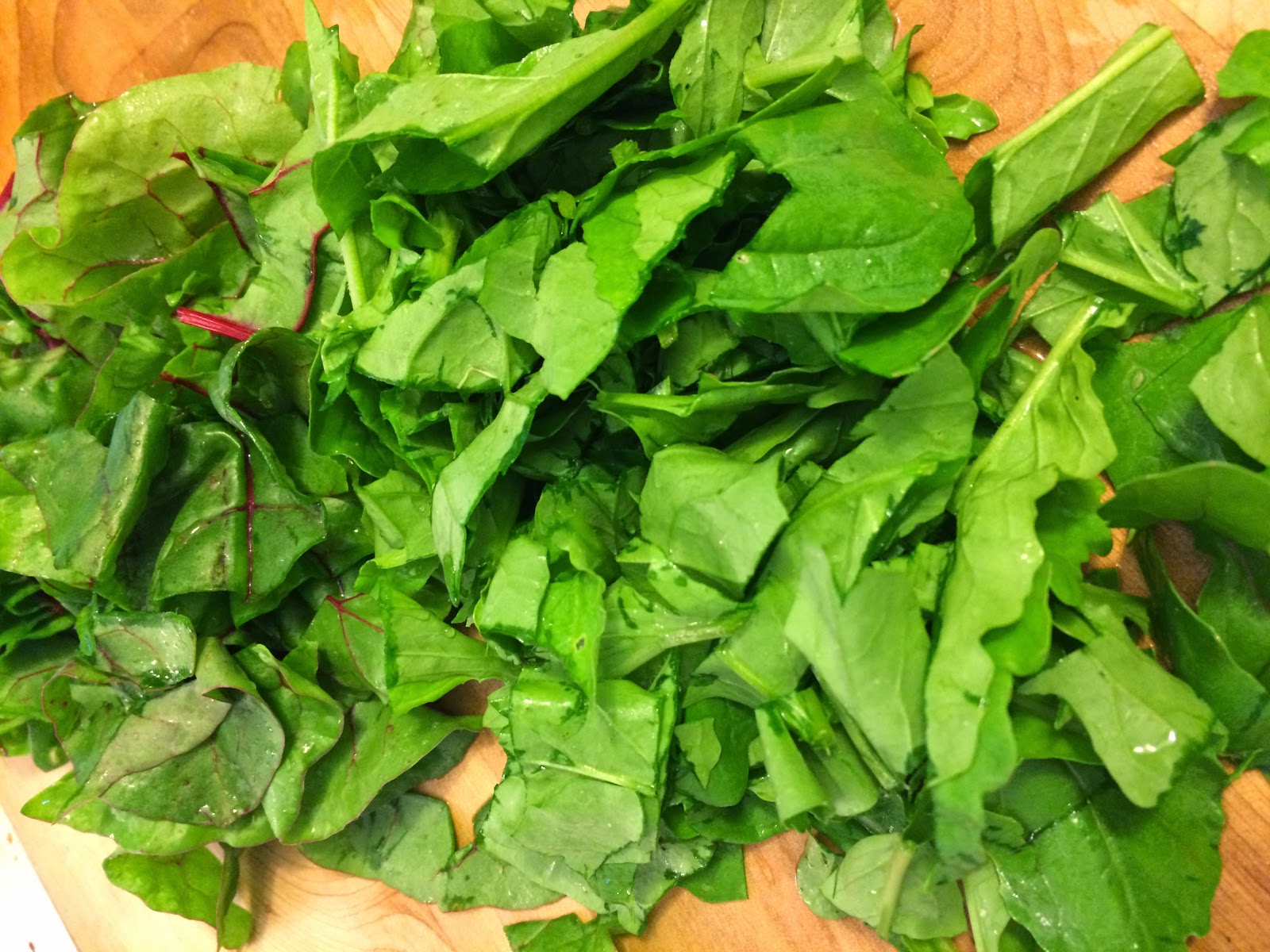 | Chopped Swiss chard and arugula, or rocket, as I now prefer to say! |