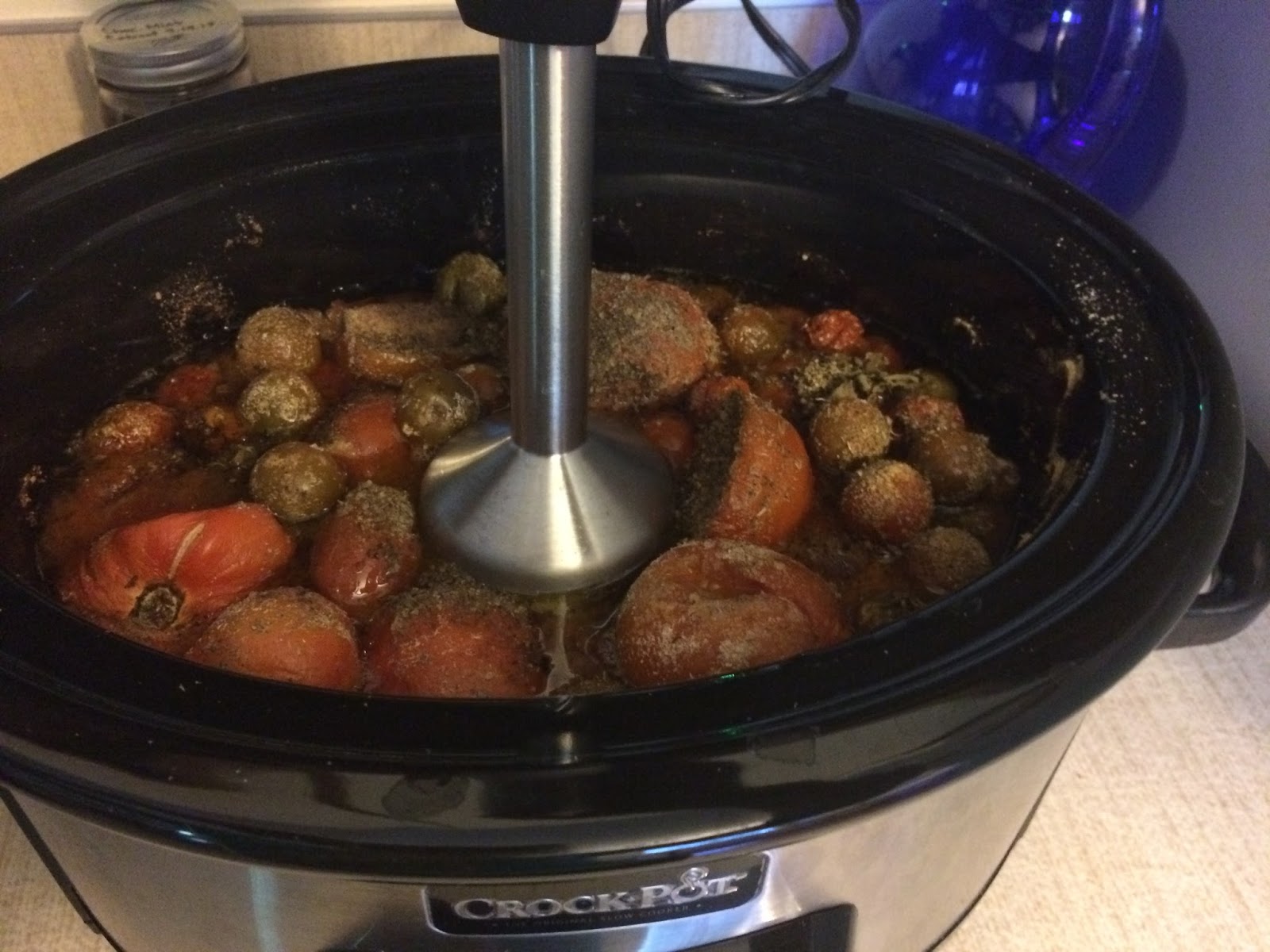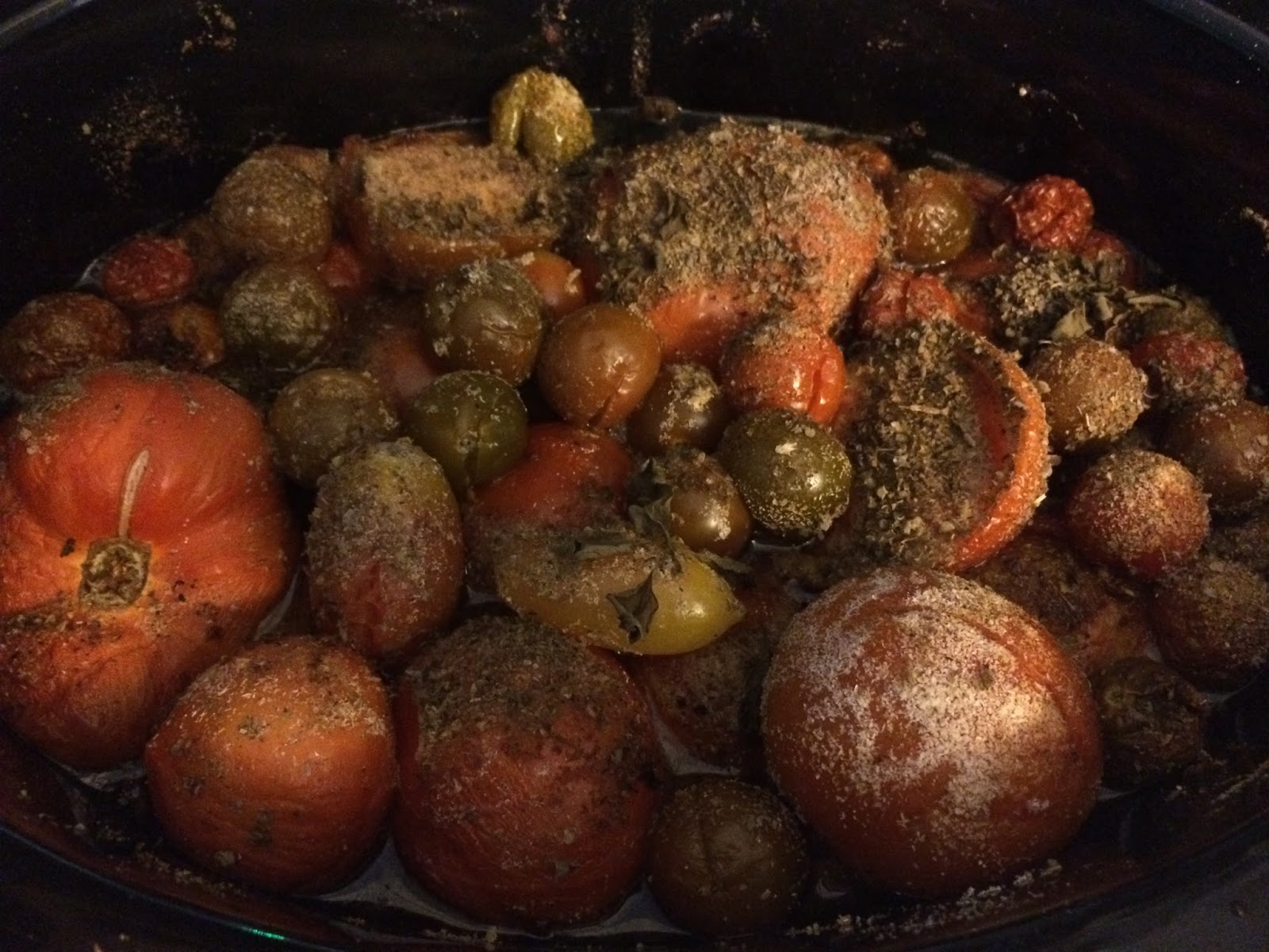 | I was surprised to find the tomatoes mostly still in tact after 8 hours in the slow cooker. |
