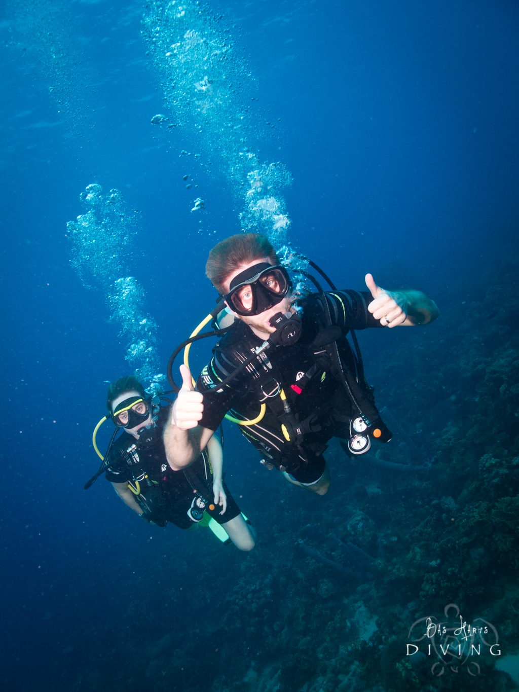 I had no issues with the first dive other than a little bit of nervousness. I was surprised to hear that we made it to a depth of 36 feet! I was not expecting to go that deep and it didn’t feel that far down. After the introductory dive, we drove to another small cove nearby that had a more immediate descent along an ocean floor of coral. I felt much more comfortable this time – once I got into a sort of rhythm with the breathing I could focus more on the fish. The reefs really are teeming with life. There are so many small fish and sea creatures just hanging out in the underwater world below. Tom was saying that the theme song to our diving excursion would be “A Whole New World” — I was thinking “Under the Sea”. Regardless, it was magical as a Disney movie and an incredible first diving experience. We went to about 40 feet on the second dive with lots more coral. Bas also brought his awesome underwater camera and snapped photos of us the whole time.
