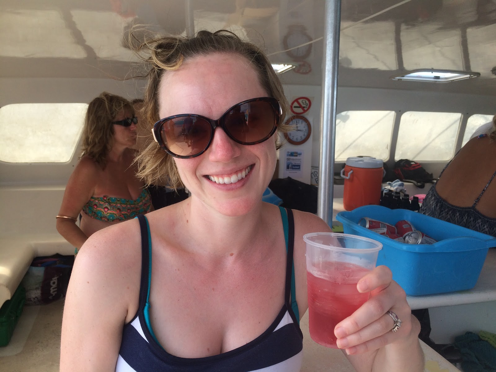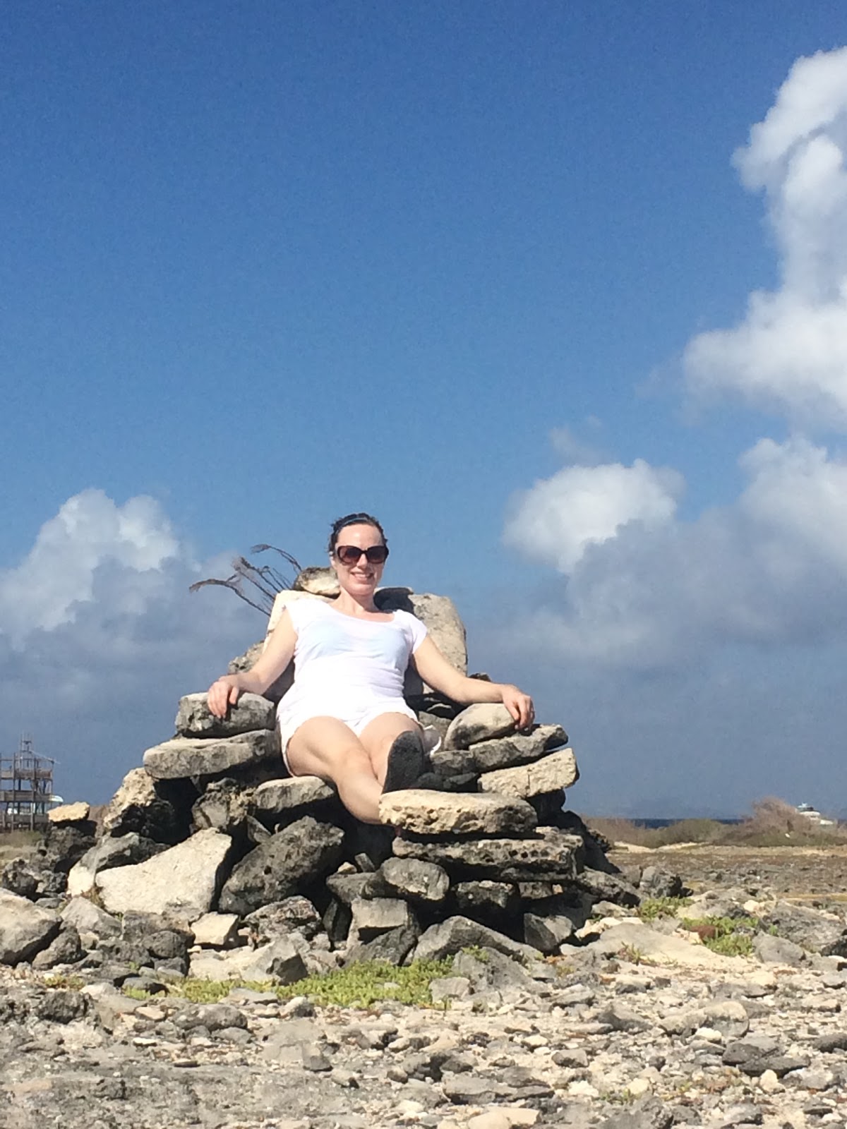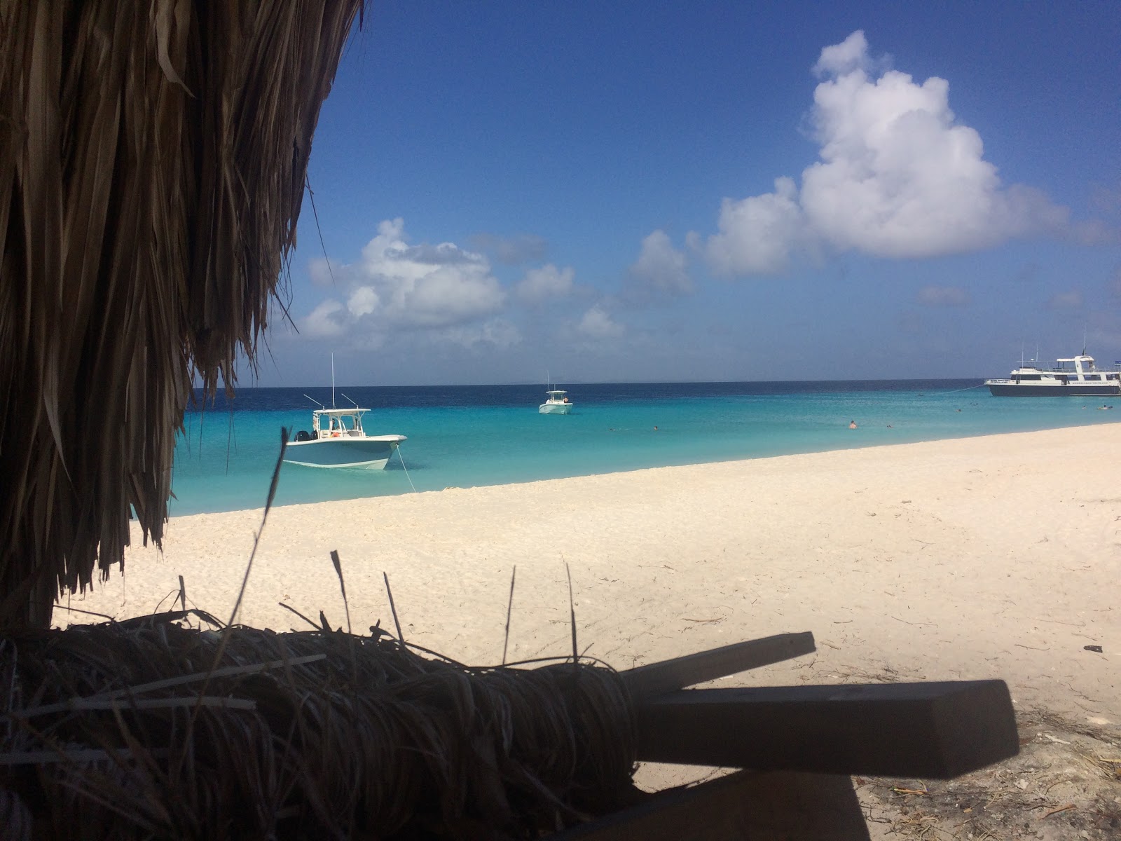 When snorkeling, we saw two small sea turtles. I’m sure you’re not supposed to do this, but I swam down to touch one. He was so close, I just couldn’t help myself! He didn’t mind our presence but I don’t think he wanted to be pet 🙂 We thought there weren’t any fish in the area until we snorkeled back to the boat. We saw a really cool flying fish on the way to the island — it must have been out of the water for like 15 seconds. Once there, though, there were hardly any fish. We were kind of surprised by that, and after following a turtle for a while, decided to swim back to the boat. As it turned out, there were a TON swarming around the catamaran. After a couple of minutes, I got out of the water. Once on the boat, one of the employees decided it would be hilarious to scare Tom, who was still snorkeling. So, he grabbed some bread and threw it in the water right in front of Tom. About 20 fish immediately flew, jumped and swam right at him, startling him pretty badly! It was all fun and games until the second bread toss which resulted in Tom backing into some fire coral! Yes, fire coral is a thing, and yes, it burns. Tom has welts on his arms to prove it. Other than that, it was a great excursion and one of the highlights of the trip. I enjoyed getting to know the crew members — three of whom were Dutch and one who was from Venezuela. The boat ride was fun in itself and the island was fun to explore, even if scorching hot.