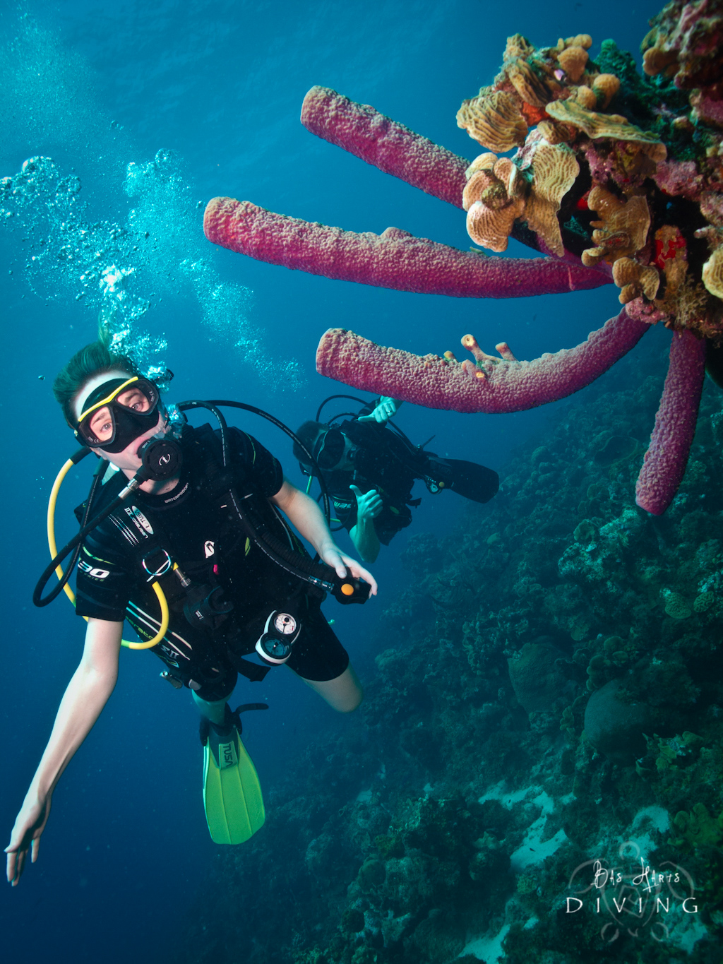 Bas Harts Diving. Neither one of us had ever been diving before, and to be honest it kind of scared me. I knew it could be dangerous if you didn’t know what you were doing or if you come up to quickly in a panic. That thought alone makes me feel a little panicky 🙂 The rules of diving are basically the same as what’s recommended in the Hitchhiker’s Guide to the Galaxy: