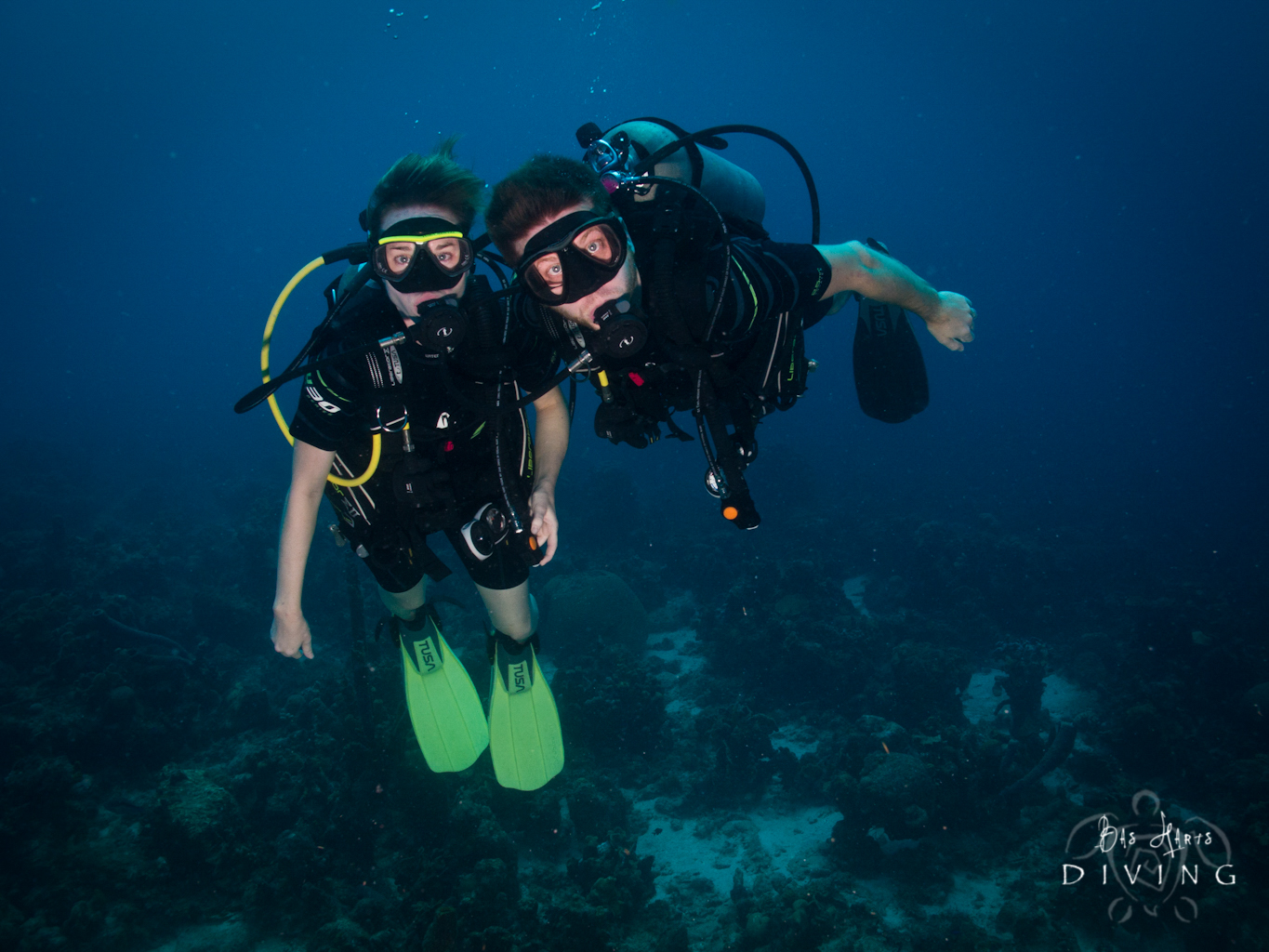 Bas Harts Diving. Neither one of us had ever been diving before, and to be honest it kind of scared me. I knew it could be dangerous if you didn’t know what you were doing or if you come up to quickly in a panic. That thought alone makes me feel a little panicky 🙂 The rules of diving are basically the same as what’s recommended in the Hitchhiker’s Guide to the Galaxy: