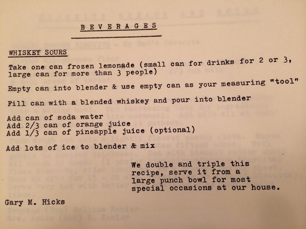 It was my Grandpa’s recipe, and it was one of the recipes that he submitted for the Family Recipes booklet that they published and handed out to family in the year that I was born. Coincidence? I think not. Although my Grandpa is no longer with us, this drink is a tradition that the family carries on each year.