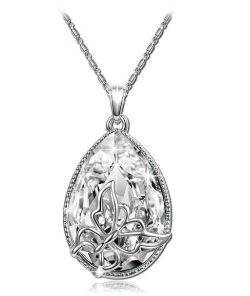 The “Butterfly Dream” necklace from Brilla Jewelry is a beautiful teardrop shaped pendant made with Swarovski crystal and featuring a butterfly design over the top. It has an adjustable length chain — which I actually really appreciate! Being smaller in stature, I find that many of the standard length chains are too long and end up hitting right at the neckline of my shirt. Not a problem with this necklace, although I did adjust it to the shortest setting.