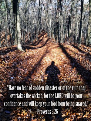 “Have no fear of sudden disaster or of the ruin that overtakes the wicked, for the LORD will be your confidence and will keep your foot from being snared.” –Proverbs 3:26