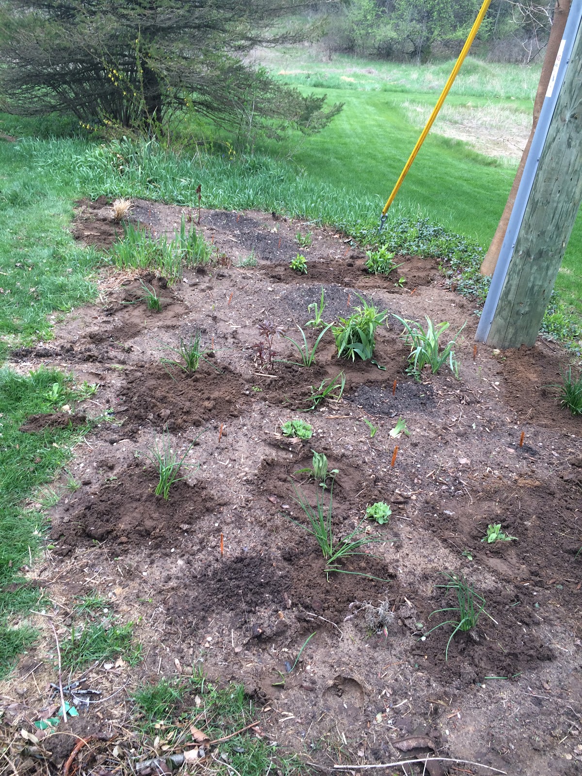 A few perennials that were already there or transplanted & seeds are in the ground!