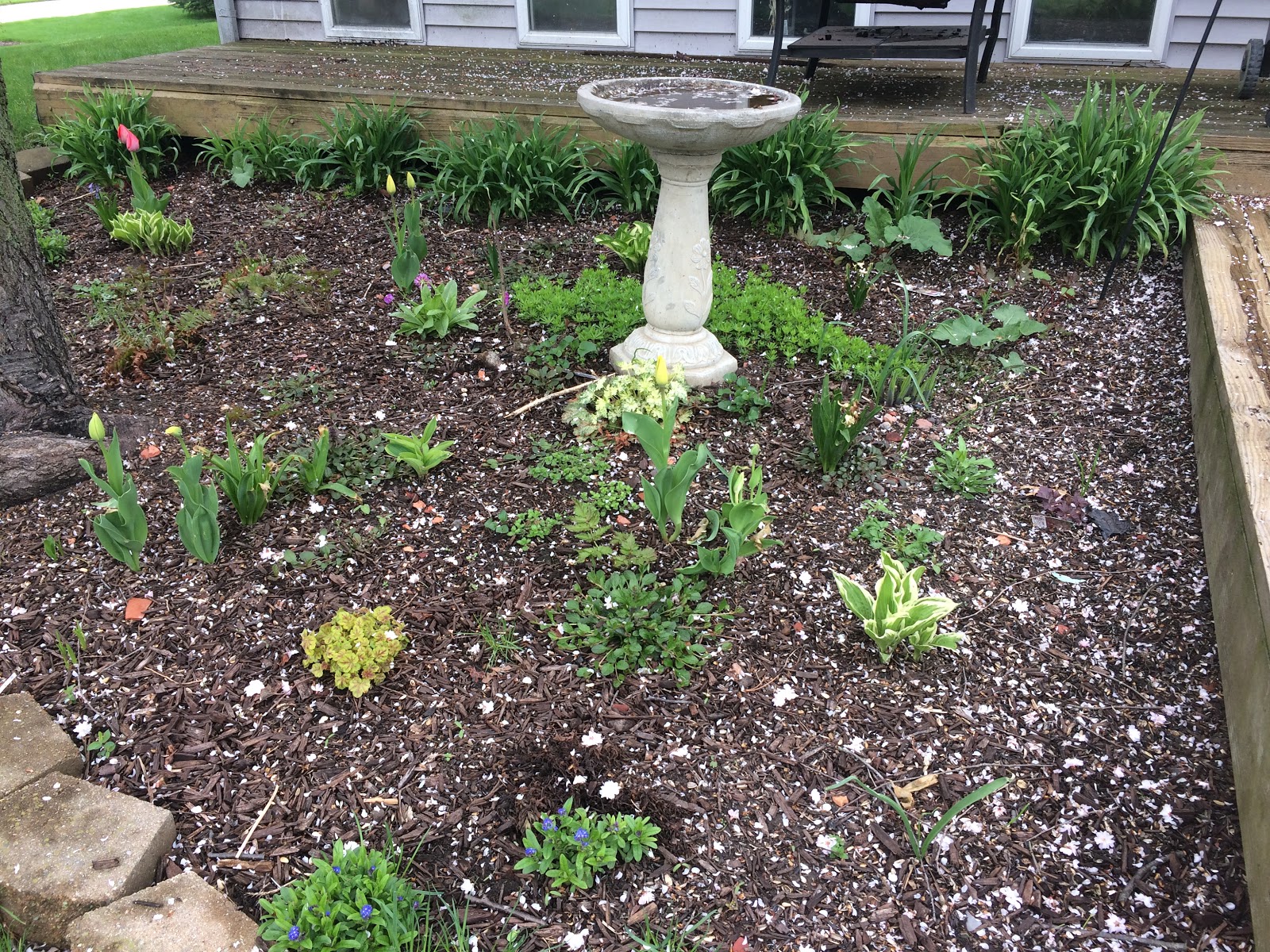 Another view of the shade garden. The flower petals on the ground almost look like it’s snowing.