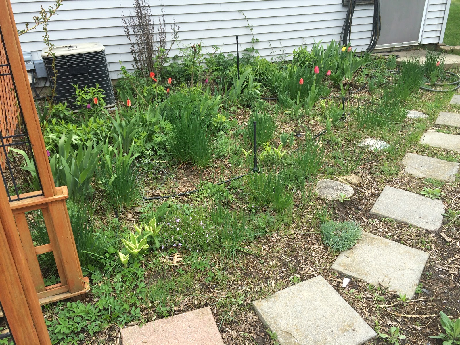 At any rate, I’ve been trying to get outdoors whenever the weather decides it wants to play nice and get some yardwork and gardening done. We had enough warm days early on that my whole perennial garden is way ahead of the game. Most years the tulips and daffodils are the only stars amidst a bed of still-sleeping perennials.