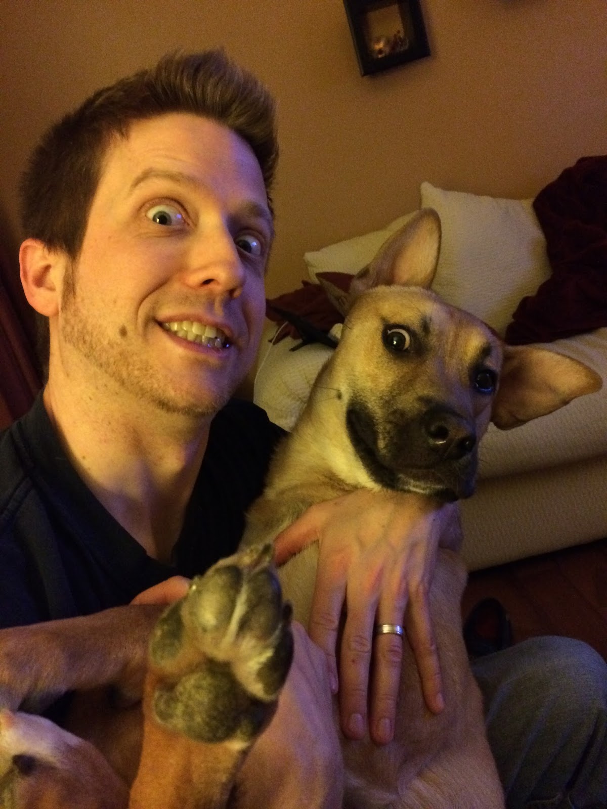You know, they say that over time dogs and owners start to look alike. Well, it frightens me a bit that Tom and Happy looked this much alike within the first year.