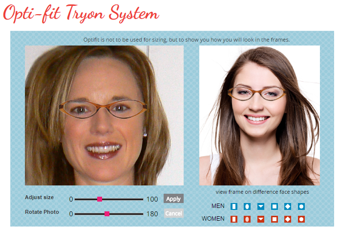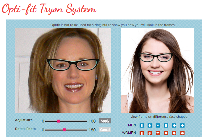 To make online shopping easier, they also have a great digital-tryon system to get an idea of what you will look like in those frames. You have the option to upload your own photo and/or select a man or woman with a similar face shape to you. You can adjust the position so the frames are in the right spot — the photo I used was a little crooked, but you can still get the idea!