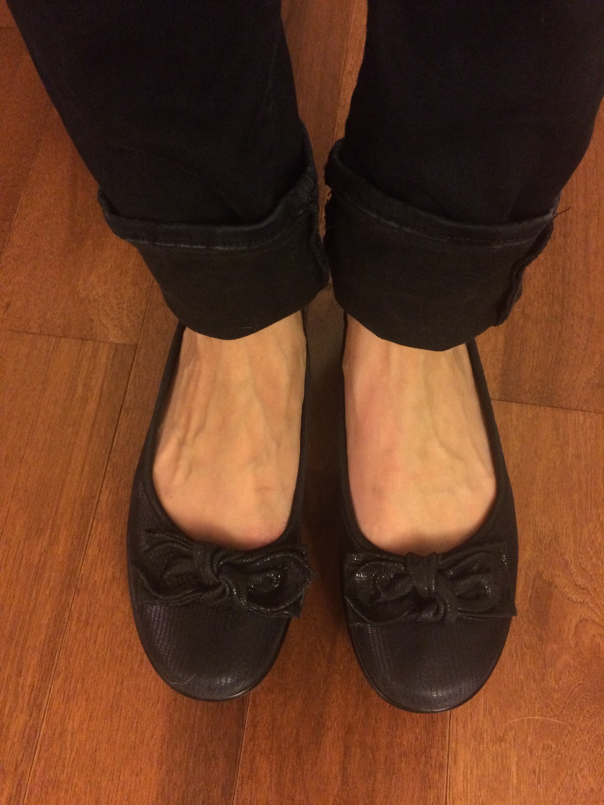 When I was young, I used to wear all the high heels and platform shoes. It was nice to feel tall every now and then. However, since Rheumatoid Disease struck, I’ve been relegated to flat, “comfortable shoes” — and the struggle to find such shoes that are also stylish. When I had the opportunity to review Hotter Originals shoes, I jumped at the chance. Hotter is a British brand with a focus on comfort (yes!) — and their Originals line features classic styles that go well with a variety of outfits. I chose the Jewel style in Navy since I don’t have any navy colored shoes, and I thought these would be both cute and comfortable for work — or any occasion! They are a ballet style with a subtle snakeskin sort of pattern and a bow across the front.