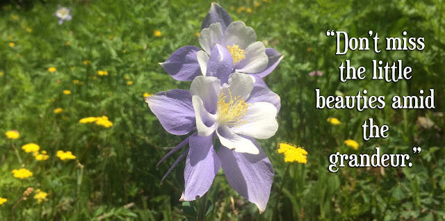 Photos cannot do this place justice. The experience as truly ineffable. But, there was something else that I was interested in on this hike, besides the grand waterfalls, majestic peaks and sweeping panoramas: wildflowers. I kept my eyes peeled for these little gems of color, and somewhere along the hike I had this thought: “Don’t miss the little beauties amid the grandeur.” Amid everything else, there was a whole other world of beauty if you took the time to look around, look down and notice the little things. And, I thought, that’s a lot like life.