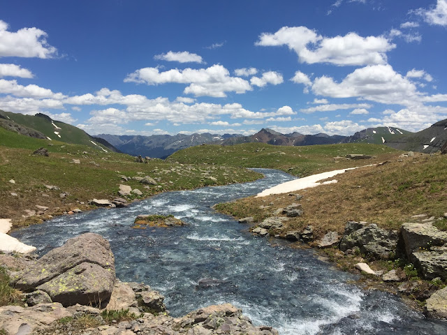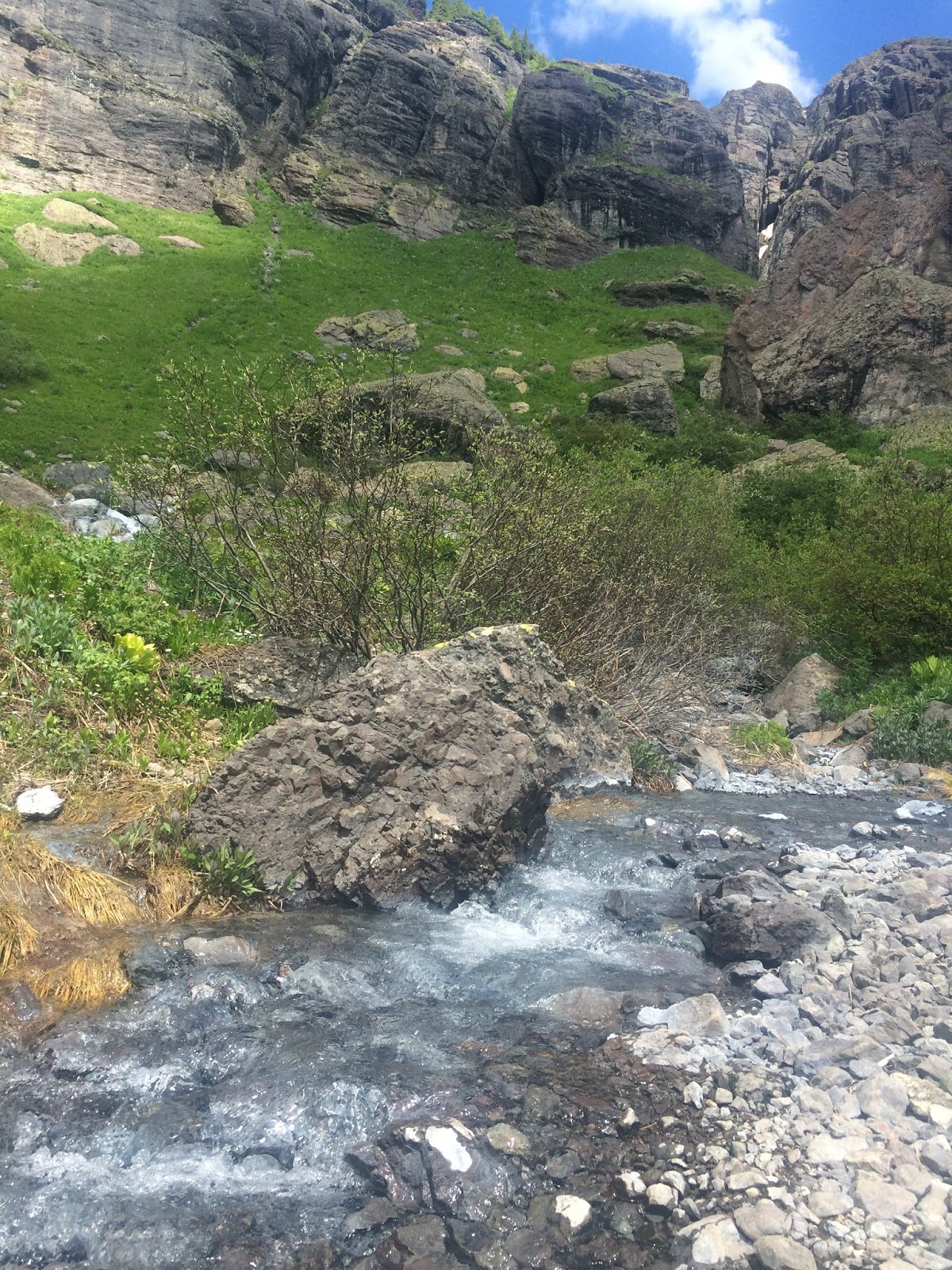 Last year, Tom and I took an amazing trip out to Colorado. After visiting with some family in Denver, we rented a car and drove in a big circle clockwise around the state, stopping in several little towns along the way. My favorite was Ouray. This little mountain town booms at 4th of July — and not just because is the fireworks (though those were amazing). Nestled in the San Juan mountains, it’s a beautiful area and a neat place to experience. My favorite part of the trip, however, was a little ways south of there, closer to the town of Silverton. We did the most amazing mountain hike — starting at about 9,800 feet and going to almost 13,000. With steep switchbacks and thin air, the hike was a real butt kicker for us flatlanders!